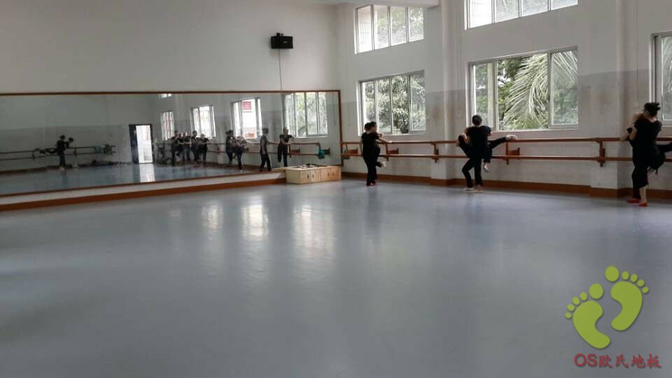 歐氏地板承建廣西師范學(xué)院舞蹈室地膠鋪設(shè),采用淺灰色舞蹈舞慕系列地膠,共830㎡。(完工圖一覽)