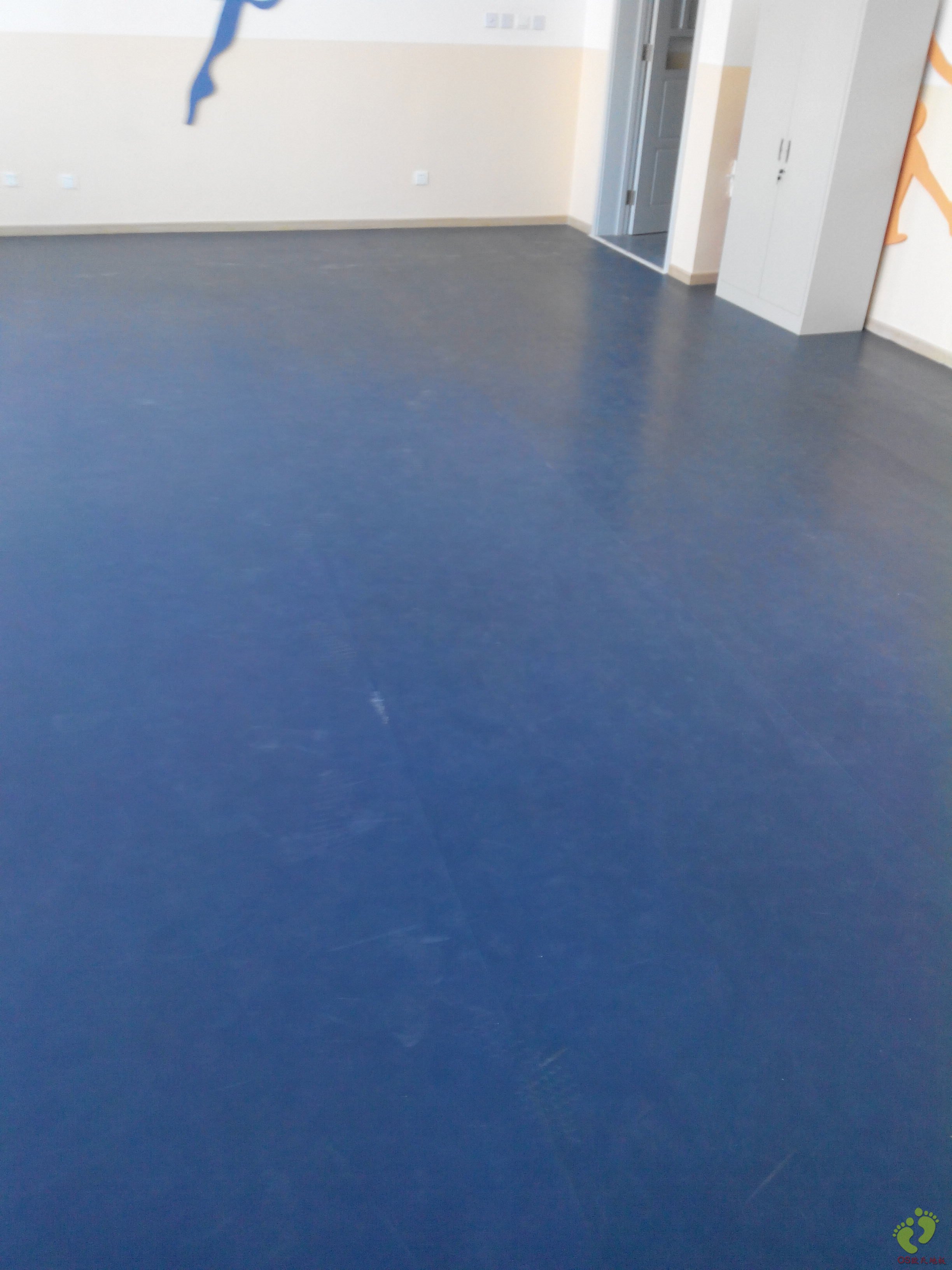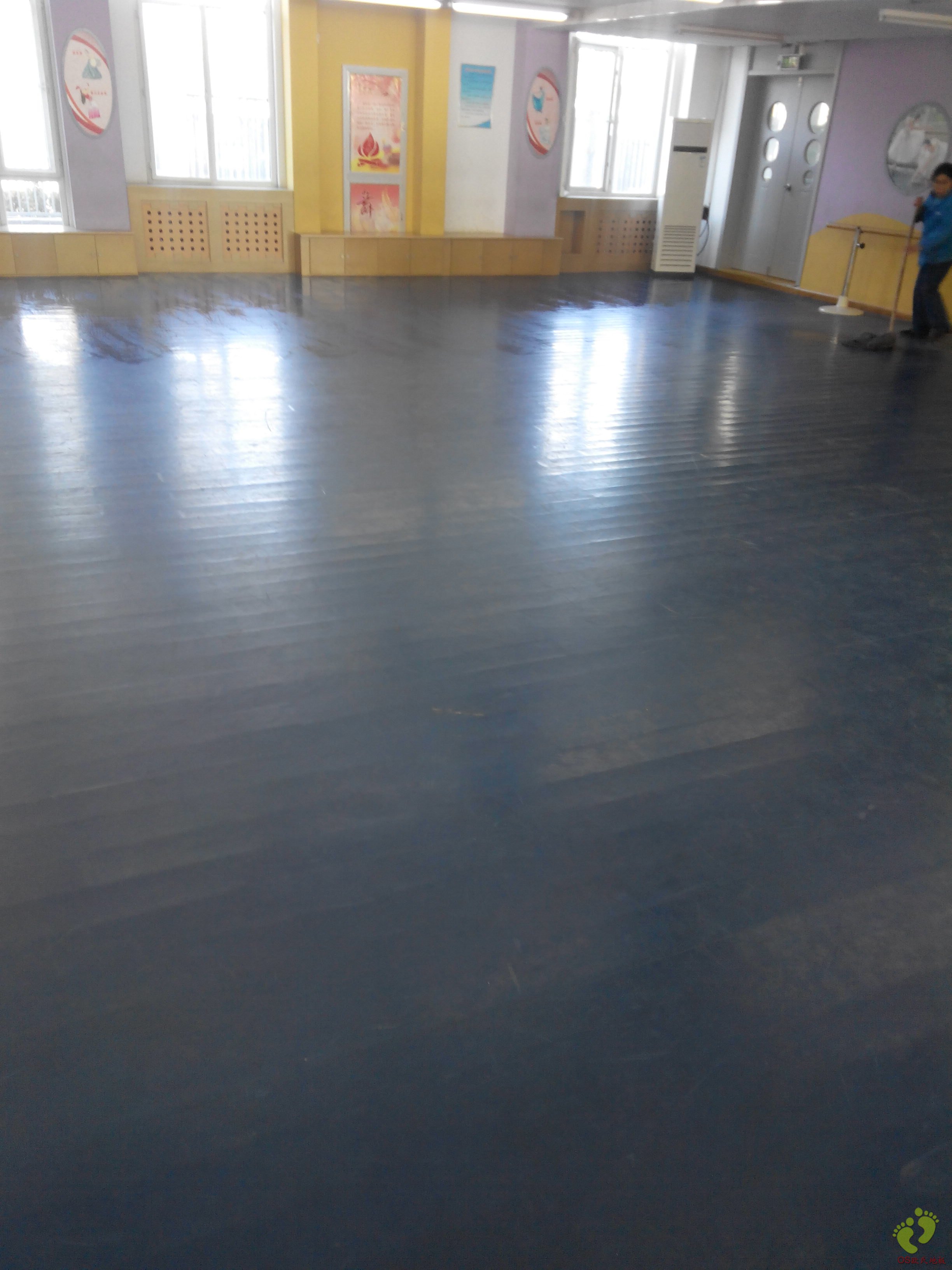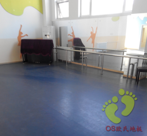 日前我公司承接了北京小學(xué)翡翠城分校舞蹈教室舞蹈地膠的鋪設(shè),施工面積總計230.8平米,采用我公司 舞愛羅藏藍色3mm厚的舞蹈地膠產(chǎn)品。完工效果好,地面平整,顏色均勻、光澤、亮度好,不反光。