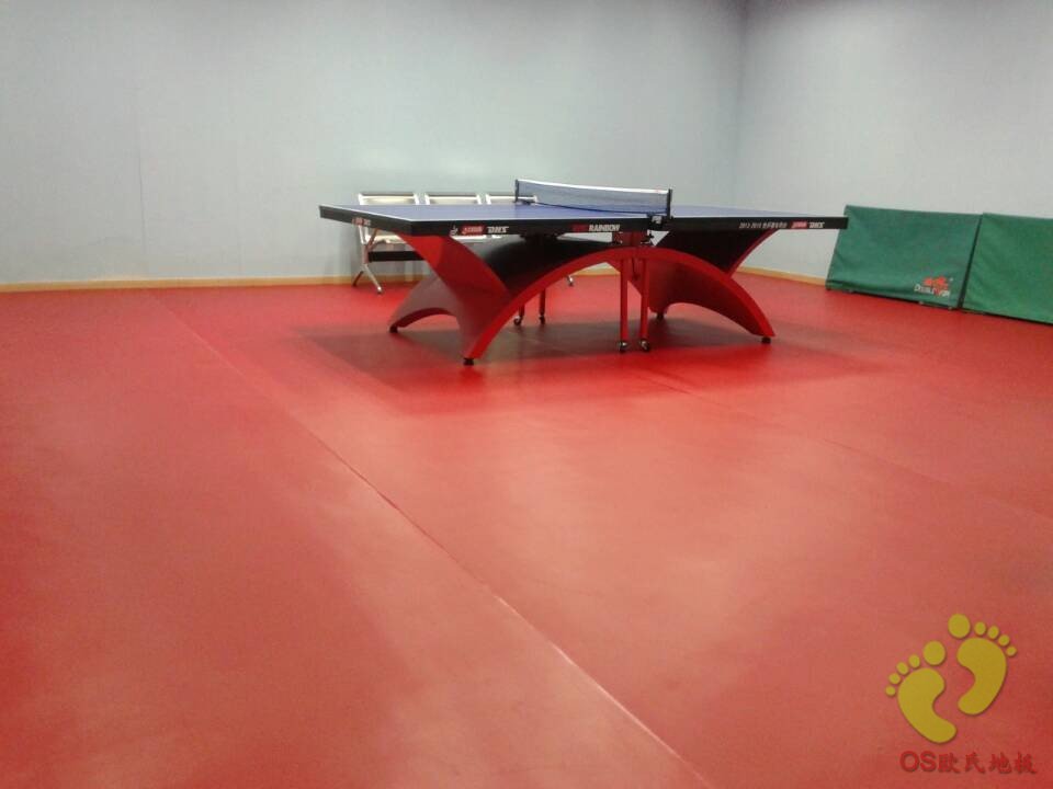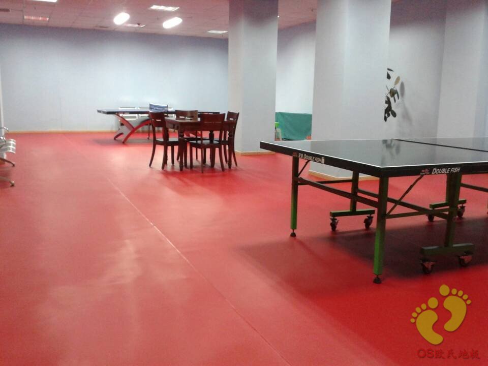 南京財(cái)經(jīng)大學(xué)乒乓球館總面積200㎡,球館選用歐氏地板乒乓球館專(zhuān)用地膠OSP066紅色網(wǎng)格紋.厚度4.5mm!